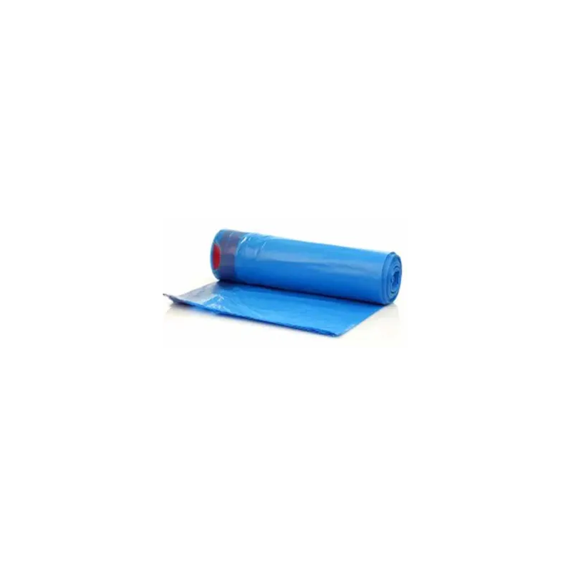 Bolsa de basura doméstica con autocierre color azul, resistente - galga 58. Rollo de 15 unidades. La caja completa tiene 50 rollos.